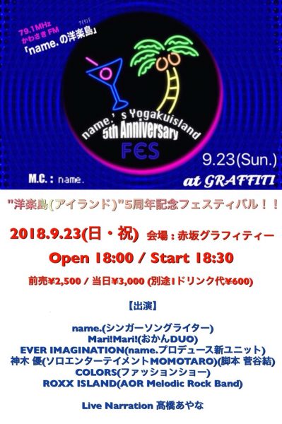 “name.の洋楽島(アイランド)” 放送5周年を記念して、記念イベントを開催する事になりました!