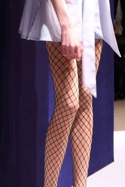 今季テーマであるPrimitive(原始的)の言葉の表す通り、お得意の複雑なレイヤード技術や異素材使いはそのままに、千鳥格子やグレンチェック等普遍的なテキスタイルや、メッシュやレース、切りっ放しといった生地の素材感をそのまま残した作品が多く見てとれる。