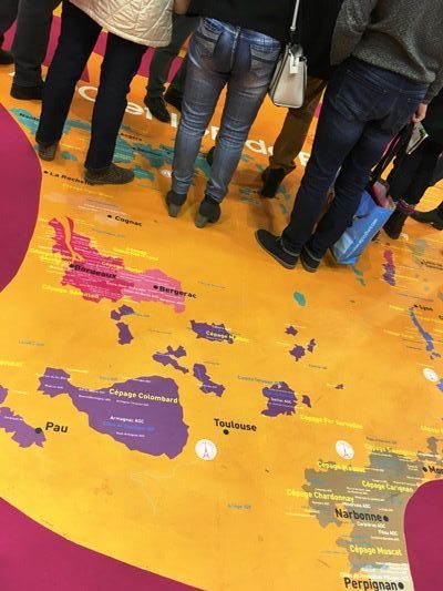 ですが、フランスの方からすると自分の国の地図。ましてや誇るべきワインの地図なので、大人も子供も指をさしながら食い入るように見ていました。