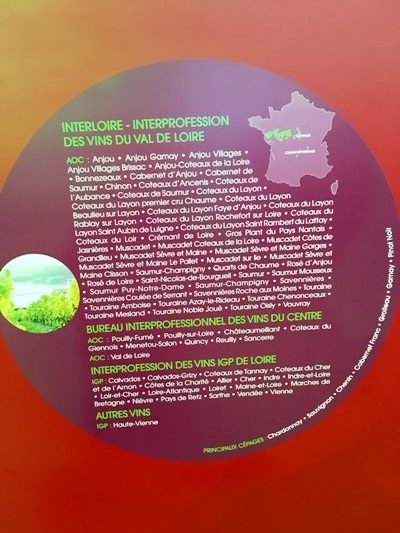 これは、フランスで法律で定められ守られている原産地呼称を持っている地域が色分けされています。